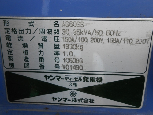Brand:Yanmar Model:AG60SS Capacity:60KVA